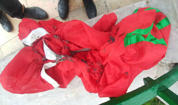 الإحتجاج تجاوز الخطوط الحمراء : التنكيل و إحراق العلم الوطني امام البرلمان من طرف تلاميذ غاضبين .