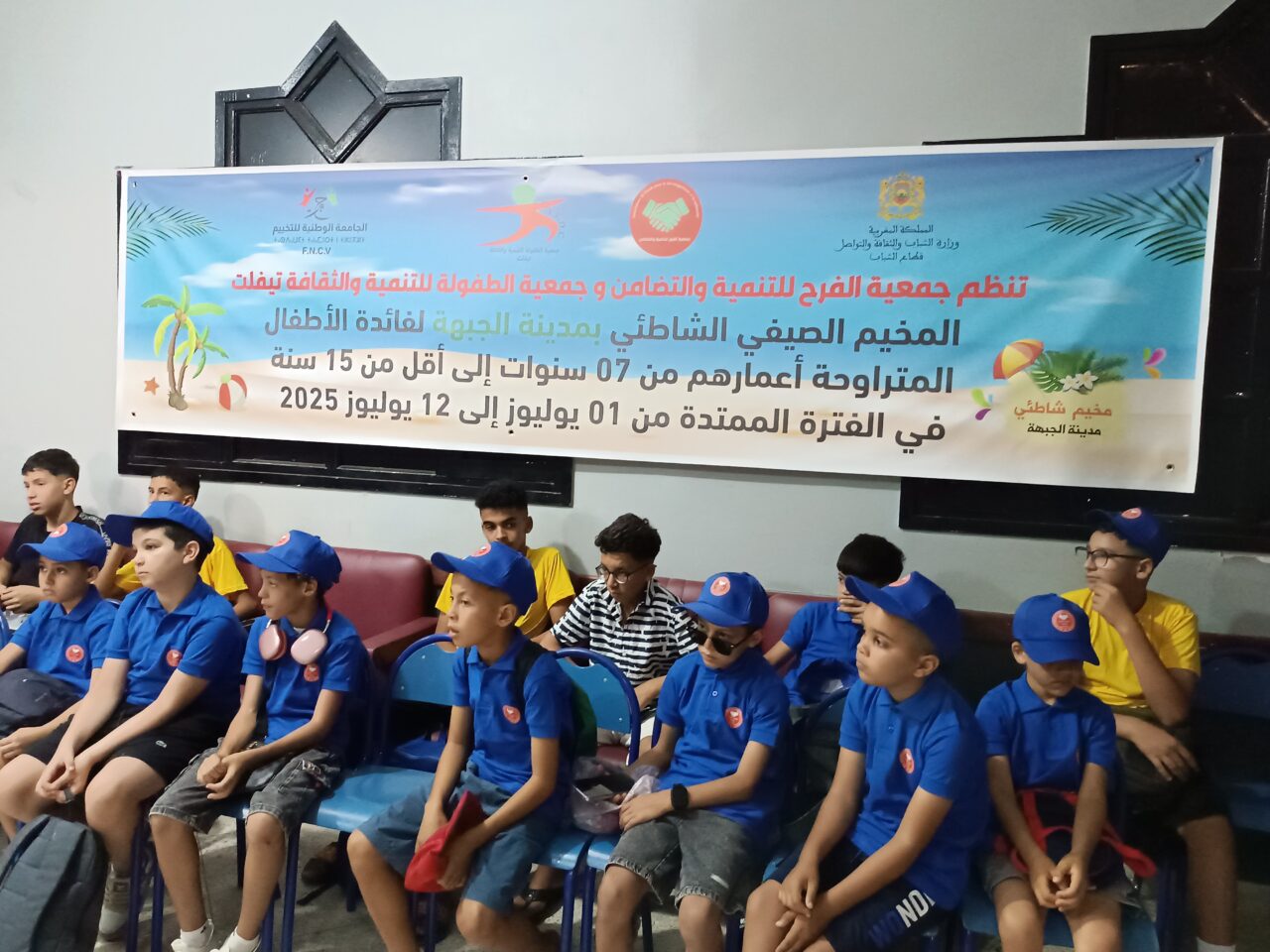 وتنظم هذا المخيم كل من جمعية الفرح للتنمية والتضامن وجمعية الطفولة للتنمية تحت شعار: “المخيم فضاء للترفيه”، مستهدفتين الأطفال الذين تتراوح أعمارهم ما بين 7 و15 سنة من مختلف أحياء مدينة تيفلت ودائرتها.
