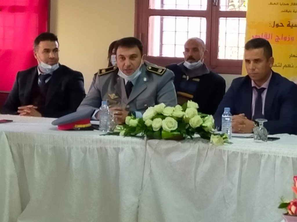 وحول المحور الثاني،المتعلق بتزويج القاصرات، ركز الأستاذ شلوشي على أهمية الموضوع، وما يكتسيه من راهنية لدى التسلية العامة، التي أنجزت دراسة تشخيصية أولية في الظاهرة، والأثار السلبية التي تنعكس على بنية المجتمع خاصة مؤسسة الأسرة، مؤكدا؛ أن بالرغم من التراجع النسبي الحاصل في زواج القاصر، إلا إن المسألة تستدعي بذل الجهود، سواء من طرف القضاء المكلف، أو المتدخلين في القطاعات الأخرى، خاصة التعليم، بالوقوف على ظاهرة الهدر المدرسي،رغم وجود بعض الاكراهات والسلوكيات الاجتماعية، والأعراف التي تقف أمام القضاء، في الحد من الظاهرة، والتي تستوجب التوعية والتحسيس، بحسب ما جاء في مداخلته.