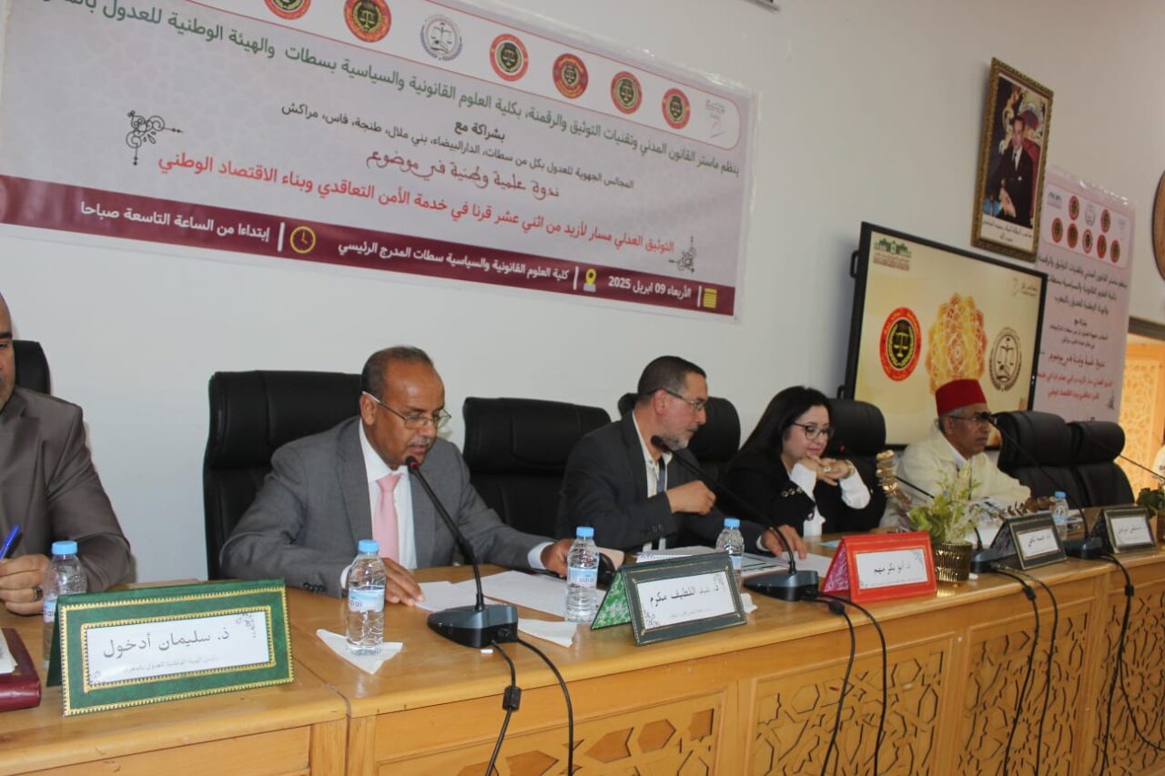 نظم ماستر القانون المدني وتقنيات التوثيق والرقمنة والهيئة الوطنية للعدول بالمغرب بشراكة مع المجلس الجهوي للعدول بكل من سطات والدارالبيضاء بني ملال مراكش فاس طنجة ندوة علمية وطنية برحاب كلية العلوم القانونية والسياسية بسطات يوم الاربعاء 09 ابريل 2025 تحت عنوان :