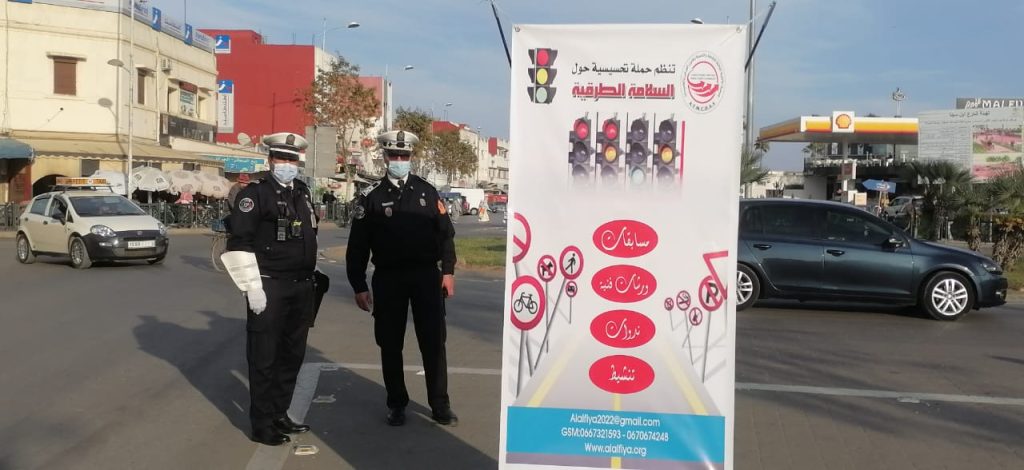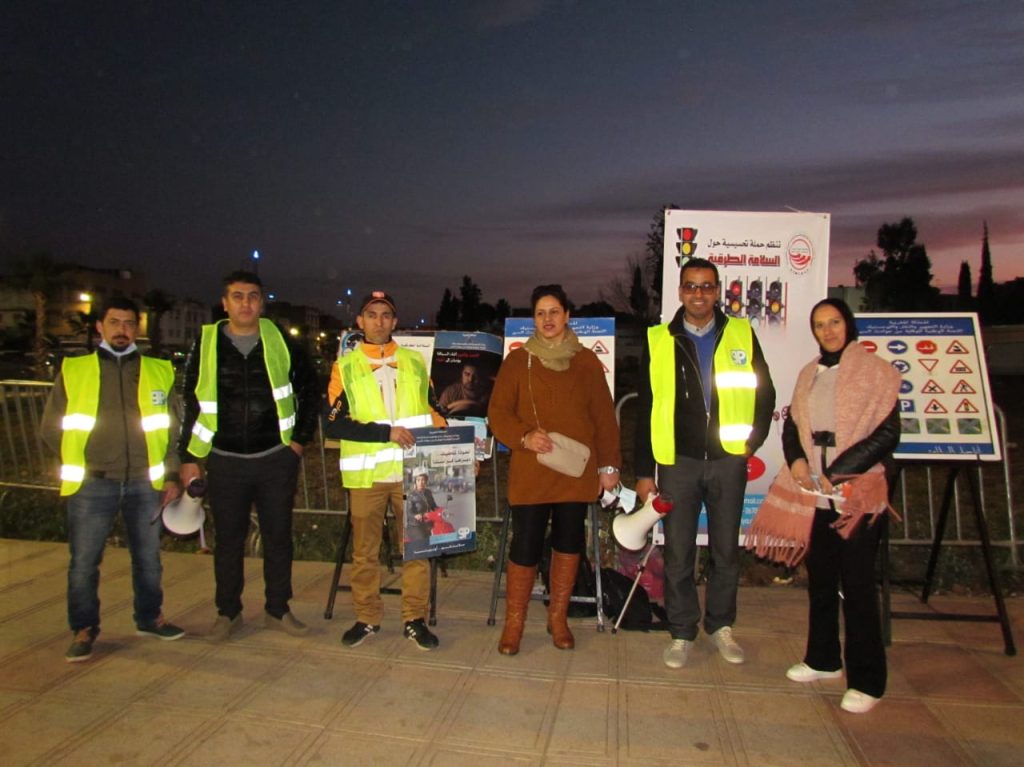 بمناسبة اليوم الوطني للسلامة الطرقية الذي يصادف 18 فبراير من كل سنة، نظمت جمعية الالفية الثالثة للثقافة و التنمية و فنون العرض بالخميسات،بتنسيق مع السلطات الامنية، حملة تحسيسية للساكنة بالمدار الطرقي بشارع محمد الخامس.