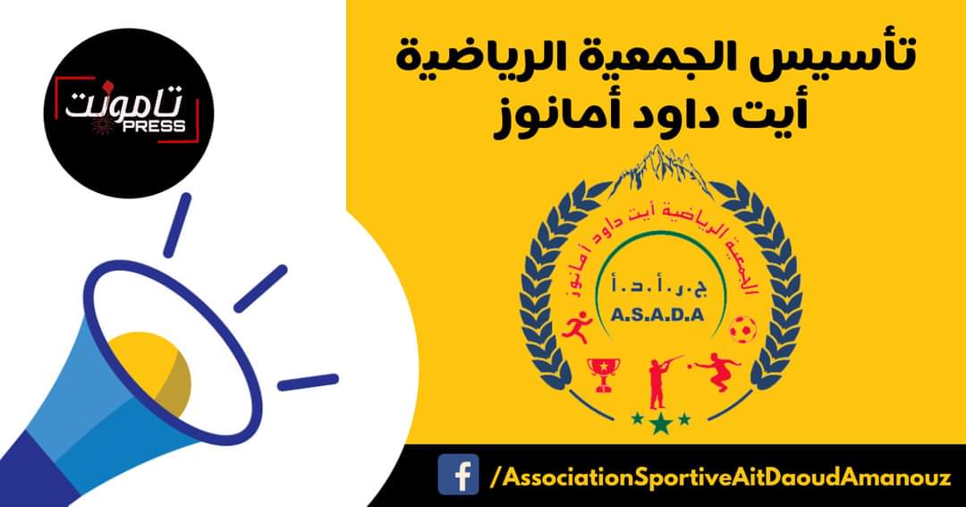 إنعقد بعد زوال يوم أمس الجمعة 08 اكتوبر2021 على الساعة الخامسة زوالا الجمع العام التأسيسي لجمعية رياضية تحمل إسم ” الجمعية الرياضية ايت داود امانوز “وقد عرف هذا الجمع العام حضور السلطة المحلية وفعاليات رياضية و جمعوية و قد إستهل هذا الجمع العام التأسيسي بتلاوة آيات بينات من الذكر الحكيم قبل أن تعطى الكلمة للجنة التحضيرية التي قامت بالترحيب بالحضور الكريم وكذا وضع الجميع في حيثيات ودوافع تأسيس هذه الجمعية التي هدفها الرئيسي العام هو النهوض بمختلف الرياضات بدوار أيت داود أومانوز و بالتالي جمع شمل شباب الدوار وتحقيق مجموعة من الأهداف الأخرى تصب في مصلحة الدوار.