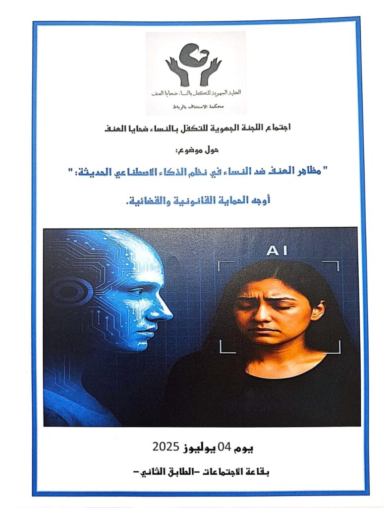 و أجمع المشاركون في ختام الاجتماع على أن الحماية القانونية للنساء في العصر الرقمي أصبحت ضرورة ملحة تستدعي يقظة دائمة و تشريعا مواكبا و تعاونا بين جميع المتدخلين، كما تم التأكيد على أن مواجهة هذه الجرائم لا تنحصر فقط في العقاب و انما أيضا عبر الوقاية و التحسيس و تطوير ثقافة رقمية تحصن النساء و الأطفال من المخاطر المستجدة للذكاء الاصطناعي .