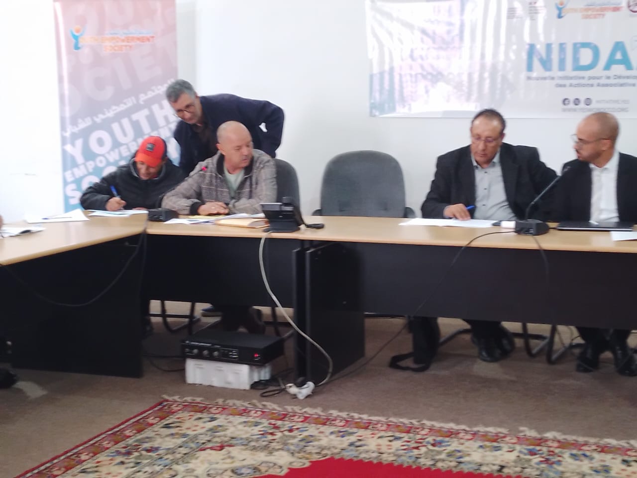 في بداية الندوة، رحب حسان مسرمان، بالحضور ،شاكرا إياه على تلبية الدعوة، تلته كلمة رئيس هيئة تكافؤ الفرص ومقاربة النوع، الذي رحب بدوره بالخضور، مثنيا على أعضاء الهيئة، بفضل مجهوداتهم،باعتبارهم دعامة أساسية، قوة اقتراحية ، كما شكر السيد رئيس المجلس البلدي والسيد باشا مدينة تيفلت على تعاونهم ودعمهم لهذه الخطوة الإيجابية التي تقوي من مهارات جمعيات المجتمع المدني وذلك من أجل مساهمته ومشاركته باقتراحات وأفكار إلى جانب المجلس البلدي حيت ستقدم ورشات في ما يخص إنشاء وتقديم عرائض وملتمسات موجهة للمجالس المنتخبة،وفق ما جاء به دستور 2011 في إطار الديموقراطية التشاركية .