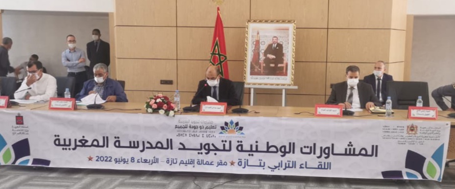 مواصلة للمشاورات الوطنية حول تجويد المدرسة المغربية، تحت شعار: “تعليم دو جودة للجميع”، التي أطلقتها وزارة التربية الوطنية والتعليم الأولي والرياضة في محطتها الإقليمية، احتضنت القاعة الكبرى بمقر عمالة إقليم تازة يومه الأربعاء 08 يونيو 2022 فعاليات اللقاء الترابي الذي تم تنظيمه من طرف المديرية الإقليمية للوزارة بشراكة مع عمالة إقليم تازة.