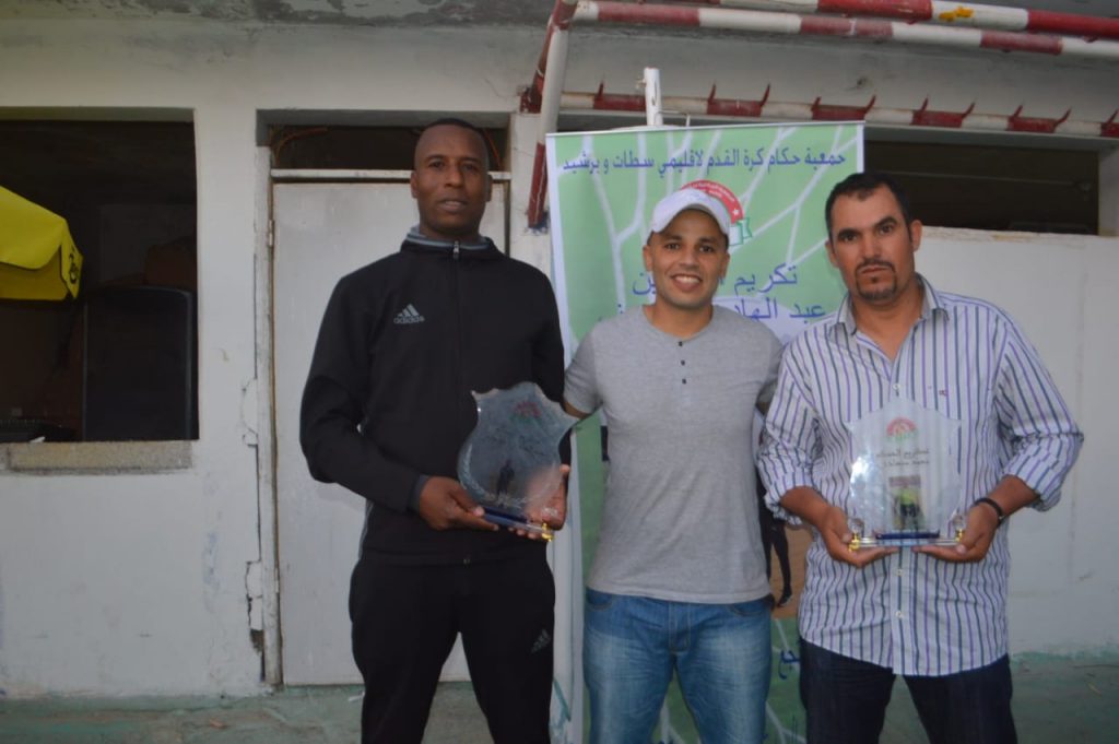 نظمت جمعية حكام سطات برشيد حفلا تكريميا يومه السبت 4يوليوز 2021 لفائدة، الحكم الوطني المتقاعد عبدالهادي جلموني والحكم المساعد محمد مسعادي .