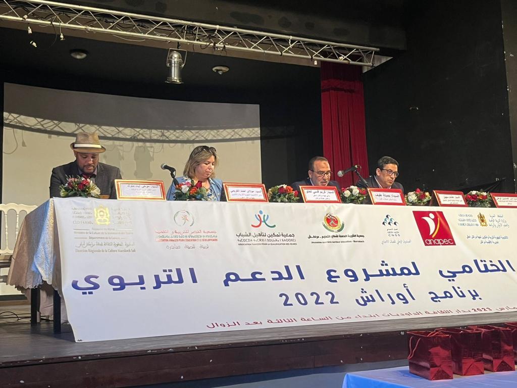 في هذه الأثناء تحتضن دار الثقافة الداوديات، الحفل الختامي لمشروع الدعم التربوي لبرنامج أوراش 2022، بشراكة مع مجلس عمالة مراكش و الأكاديمية الجهوية للتربية و التكوين لجهة مراكش اسفي، الوكالة الوطنية لإنعاش الشغل، الصندوق الوطني للضمان الاجتماعي، بتنسيق مع جمعية تمكين لتأهيل الشباب، جمعية الشبيبة العاملة لقطاع التعليم بمراكش، و جمعية النصر للتربية و التنمية.