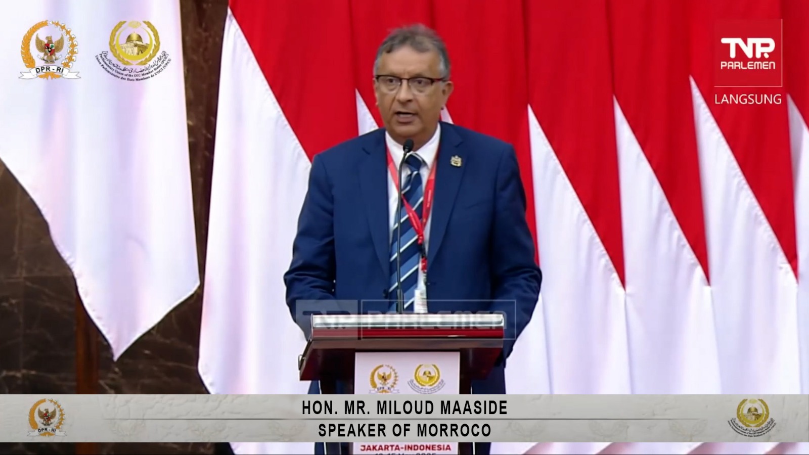 البرلماني المغربي يؤكد من جاكارتا على الموقف الثابت للمملكة المغربية، بقيادة صاحب الجلالة الملك محمد السادس نصره الله، في دعم القضية الفلسطينية العادلة